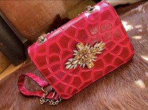 42.00 USDBag jewelry leather croco pink fushia with rhinestones silver & gold color with half metal chain & leather handmade size: 18/13cm