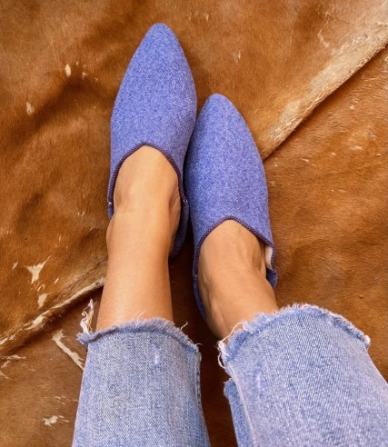 Slippers Babouches flanelle light blue with berchmane handmade